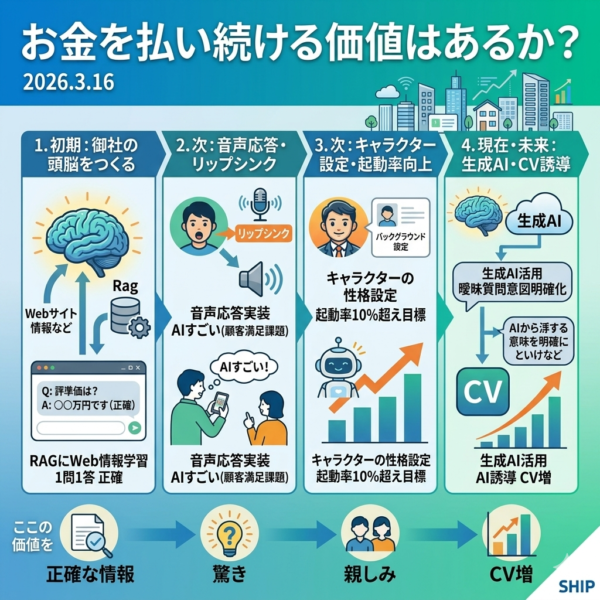 おはようございます。3月16日SHIPの朝礼を始めます。 『AI住まい相談チャットくん』は2023年9月のリリースから、これまで段階的なアップデートを繰り返してきました。その開発の根底に常にあるのは、… 続きはこちらから →
