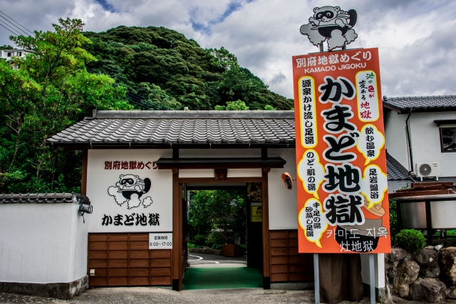 別府観光が初めての人のほとんどが訪れる「地獄」は、地熱により地中から押し出されたエネルギーが織りなす異形です。坊主の頭のように湧き出す泥の塊が点在するところは「坊主地獄」、海のように真っ青な池は「海地獄」、血のような真っ赤な池は「血の池地獄」、また熱を利用して水温を冬でも30度に保った池に大量のワニを見物できるところもあり、驚きの連続です。しかし、これらの「地獄」は大正時代の初頭までは、作物も育たないばかりか、高熱の地獄に投身して自殺する人もいたりと、所有者や住民にとっては厄介者でした。しかし今では日本有数の観光地となっています。