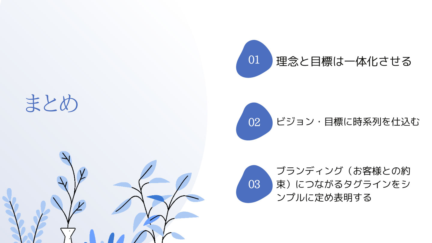 3)ブランディング(お客様との約束)につながるタグラインをシンプルに定め表明する