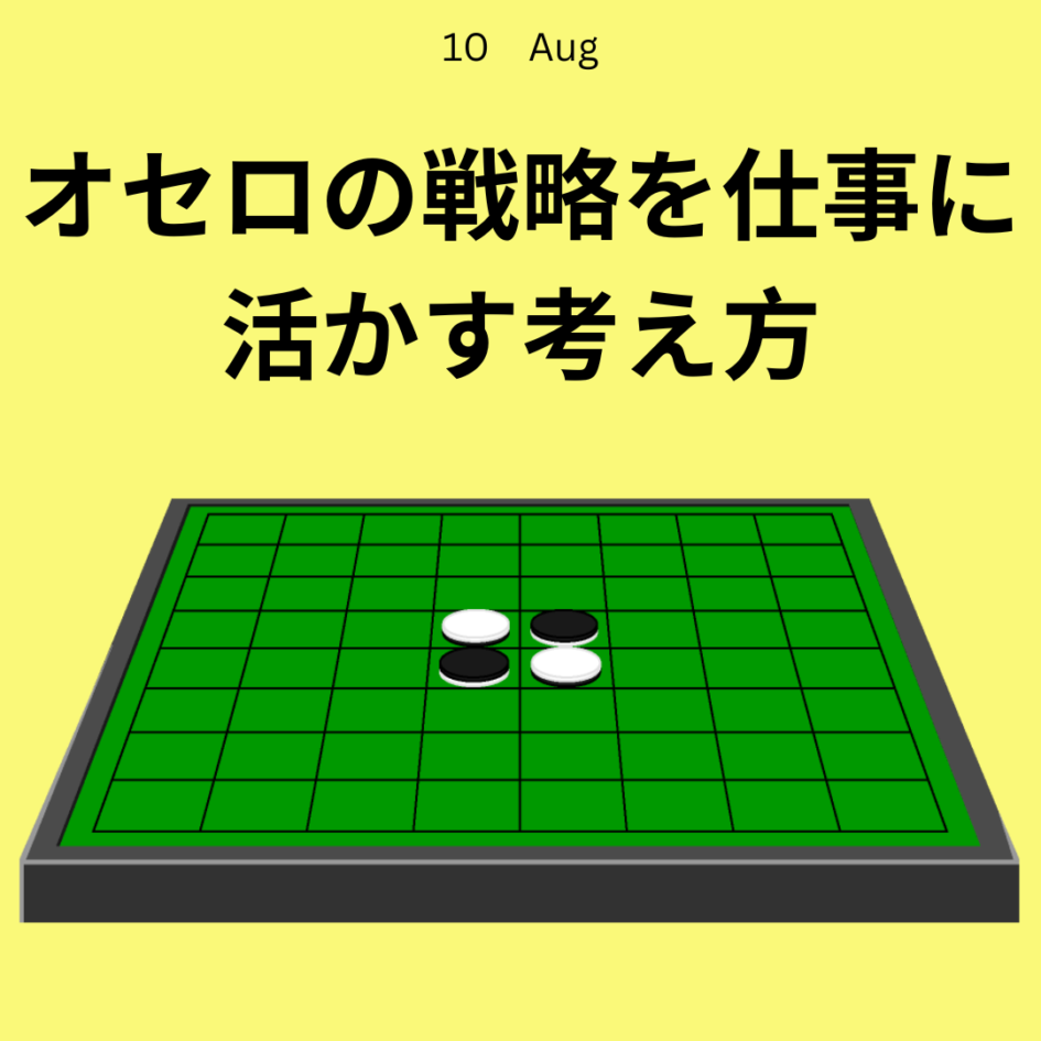 オセロでのたとえ非常にわかりやすいなと思いました。隅を先に抑える、つまり先手必勝だなと感じました。また、相手が次なにをしてくるのかを予測してそれに対しての施策を考え実行していくことも、仕事に重ねて合わせると似ている部分を感じました。何かに例えることで、難しいように思えていた問題が意外にも簡単に見えてくることがあると思うので、考えにつまったらこの方法で考えていきます。