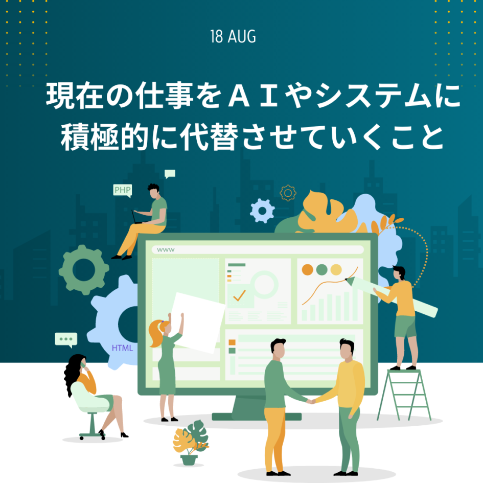 私達も常に自分たちの仕事を見直して労力を減らし、より喜んでいただくサービス開発に務める必要があります。私達の現在の仕事をAIやシステムに積極的に代替させていきましょう。