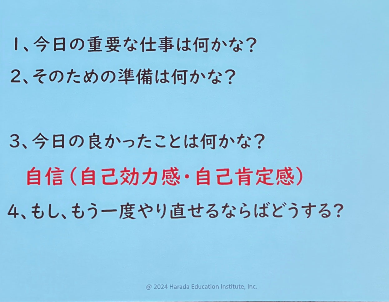 9月6日のセミナーのシェアでもありますが、以上で朝礼を終わります。