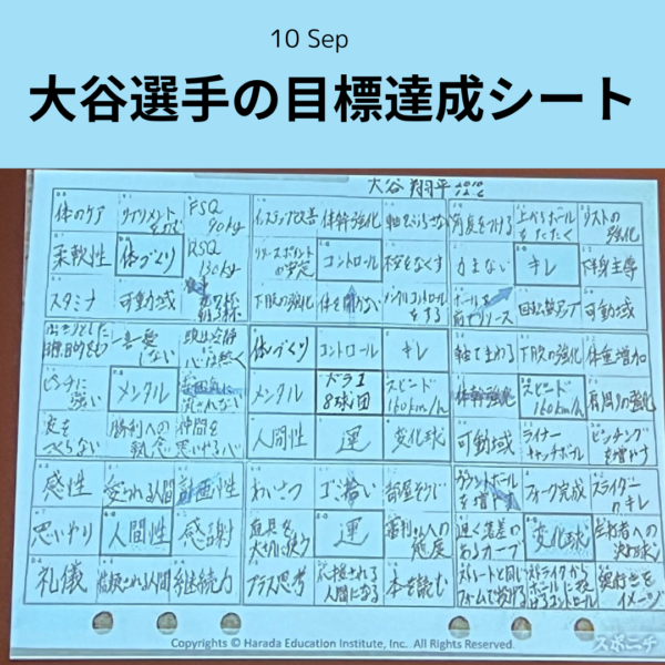 おはようございます。9月10日SHIPの朝礼を始めます。 昨日の続きです。大谷翔平選手が高校1年生のときに書いた目標達成シート(マンダラチャート)です。 野球部員の高校生が掲げる高い目標は「甲子園出場… 続きはこちらから →