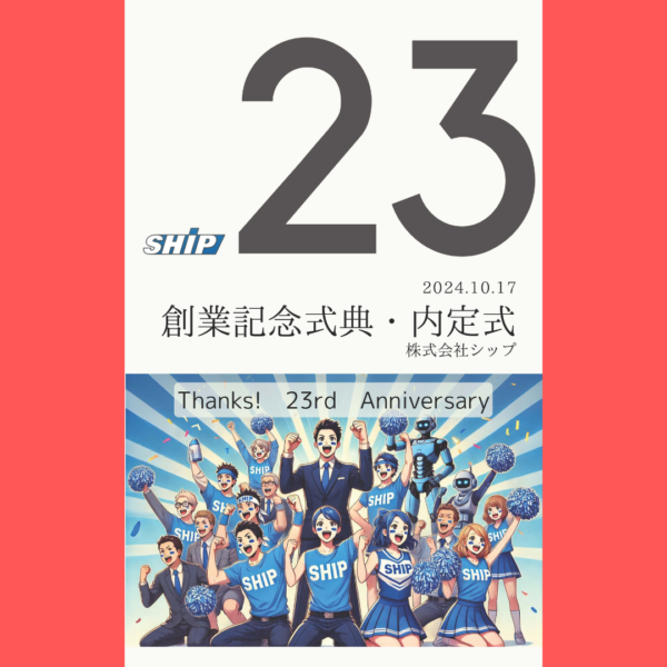 おはようございます。10月17日SHIPの朝礼を始めます。 本日はSHIPが創業して23周年を迎えられたこと、心より感謝申し上げます。この場にいらっしゃる社員の皆さん、そしてこれまで私たちを支えてくだ… 続きはこちらから →