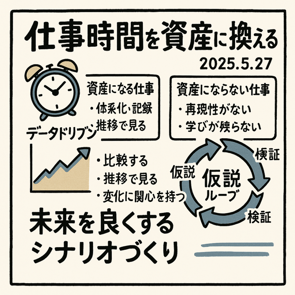 実はすべての仕事が資産(=再現性のある財産)を生むわけではありません。同じ8時間でも、「資産になる仕事」と「消費して終わる仕事」がはっきり分かれます。本稿では、Webマーケティングに限らずデータを読む基本姿勢を軸に、仕事を未来の資産へ変換する思考と行動のフレームワークを整理します。