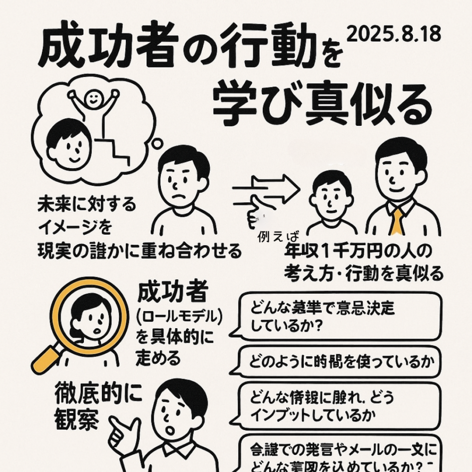 目標の解像度が高ければ高いほど、学ぶべき点は明確になります。いきなり全てを真似ることは難してくても、まずは一つ、自分にもできそうなことから取り入れてみてください。その小さな実践の積み重ねが、いずれ大きな成長へと繋がります。