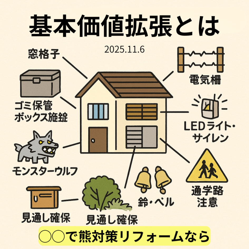 - 地域課題への適応:窓格子の相談が“防犯”ではなく熊対策だったなら、電気柵・赤外線センサー・威嚇装置(例:モンスターウルフ)まで含めた「熊対策リフォーム」を記事化し、施工事例へリンク。