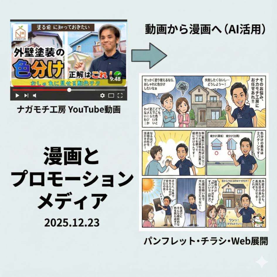 この動画を漫画にすると、ポスティングのパンフレットやチラシにも使えます。「気になる方はYoutubeに」と誘導することでご覧いただける人も開拓できると思います。