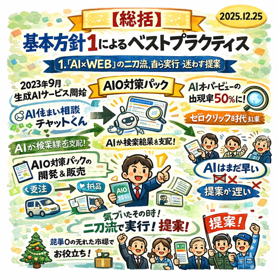 AIO対策パックで実感した、すでにAIがすっかり浸透し、私たちのビジネス環境に定着し、大きな影響を与えており、AIが仕切る市場環境への環境適合を来期は事業展開の中心においていきましょう。