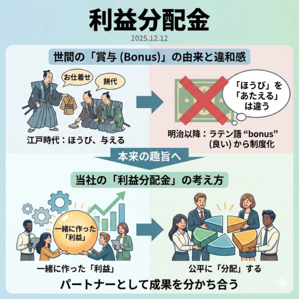 おはようございます。12月12日SHIPの朝礼を始めます。 今日は利益分配金支給日です。世間的な標準語でいえば賞与ですが、賞与(しょうよ)」という言葉自体は「賞(ほうび)」と「与(あたえる)」を組み合… 続きはこちらから →