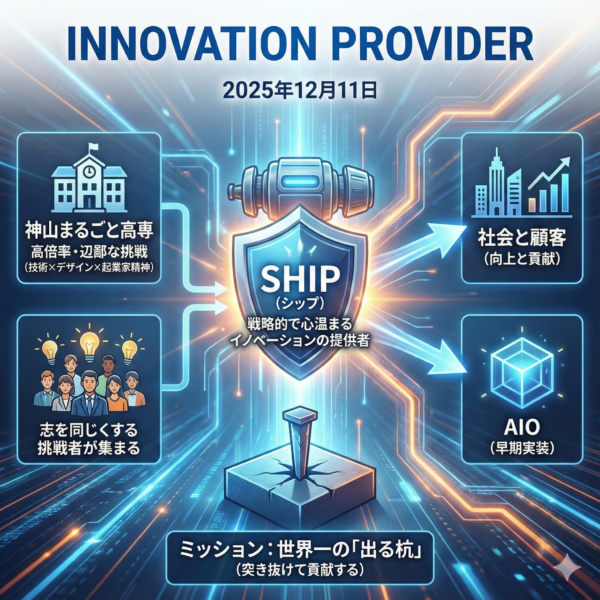 おはようございます。12月11日、SHIPの朝礼を始めます。 先日、お客様との視察のついでに神山まるごと高専に行きました。 ちょうど入試の日だったので、写真を撮ることができませんでしたが、徳島駅から車… 続きはこちらから →