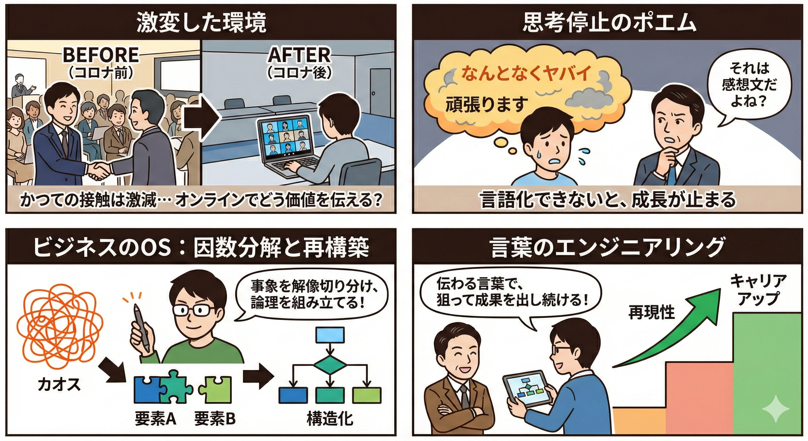 少し難しく聞こえるかもしれませんが、これは文学的な才能ではなく、ビジネスにおける「情報処理のOS」のようなものです。