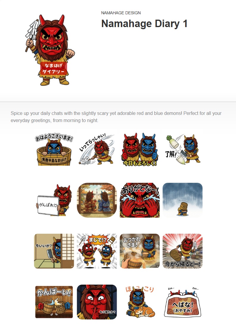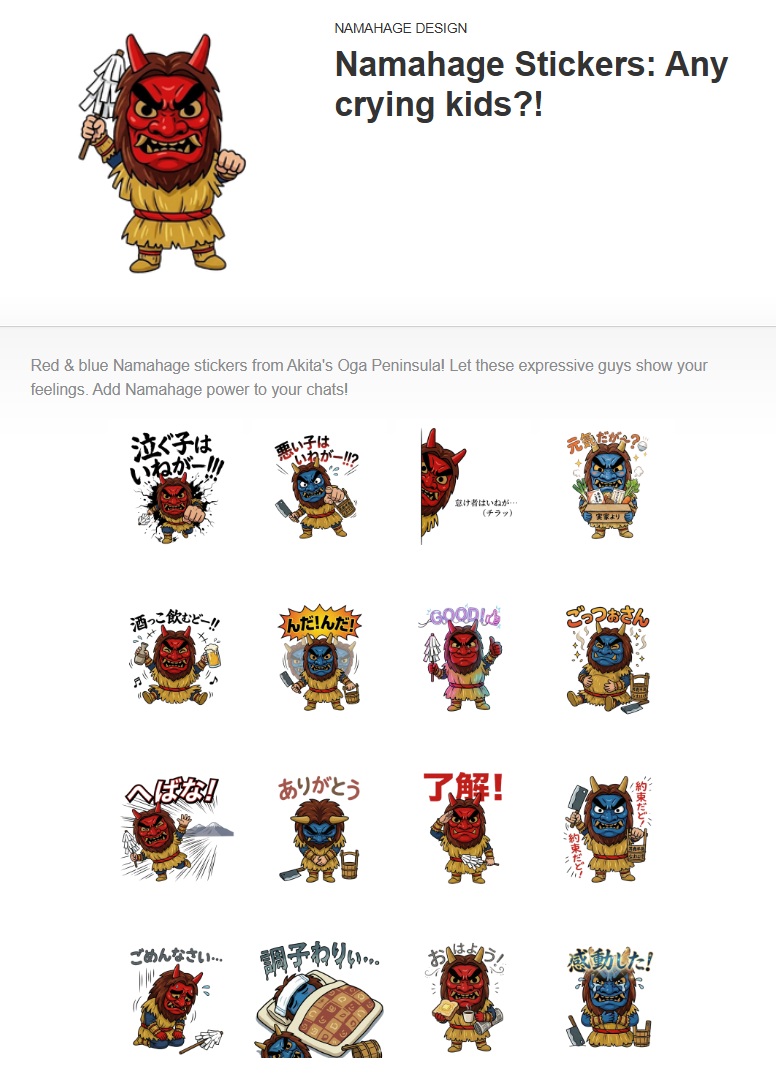2月19日の経営改善会議の場では、AIで作る「LINEスタンプ講座」を実施しましたが、その後、私自身も22日と23日の二日間にわたって、実際に自分で作成して登録まで行ってみました。キャラとしてはインパクトのある秋田男鹿のなまはげで作成してみました。