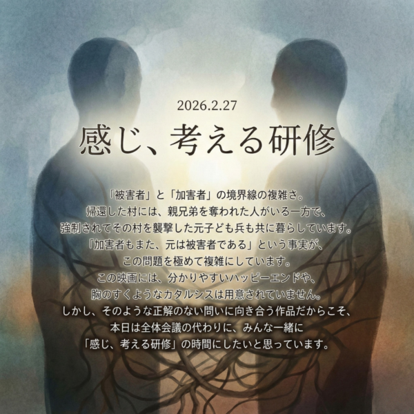 おはようございます。2月27日SHIPの朝礼を始めます。(間違いではなく、1日早く伝えることにしました) 本日は毎月恒例の全体会議に代わり、映画『RETURNEES(リターニーズ)』を鑑賞します。昨年… 続きはこちらから →