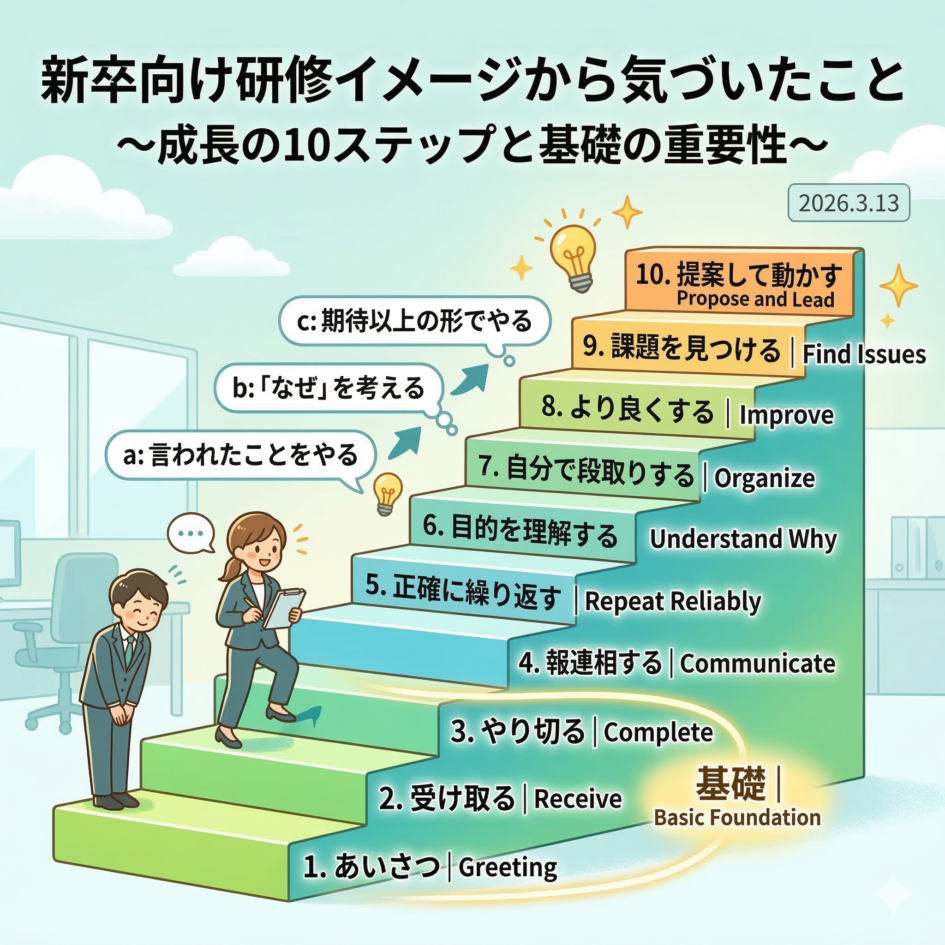 新卒向け研修の全体イメージを生成AIと話し合って作りました。