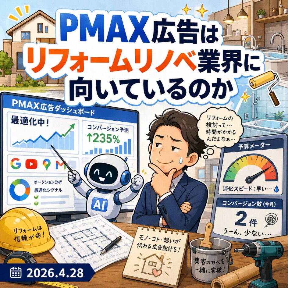 PMAX広告は、AIによる自動最適化という意味では非常に優れた仕組みです。しかし、リフォーム・リノベ業界のように、商圏が限られ、CV数が少なく、CPAも高くなりやすい業界では、AIに十分な学習材料を与えられるかどうかを冷静に見なければなりません。